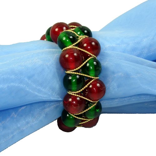 - Green and Red Beads Napkin Ring, 4 Pcs Set, Great for Cristmas and Inexpensive Gift