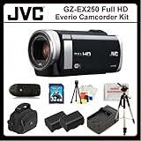 JVC GZ-EX250 Full HD Everio Camcorder Advanced Kit Includes: JVC GZ-EX250 Full HD Everio Camcorder with WiFi, 2 Extended Life Replacement Batterries, Rapid Travel Charger, 32GB Memory Card, Memory Card Reader, Large Carrying Case, Full Size Tripod, Table Top Tripod, LCD Screen Protectors, Cleaning Kit & SSE Microfiber Cleaning Cloth.
